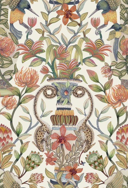 x 'Protea Garden Olijfgroen & Mandarijn op Wit'