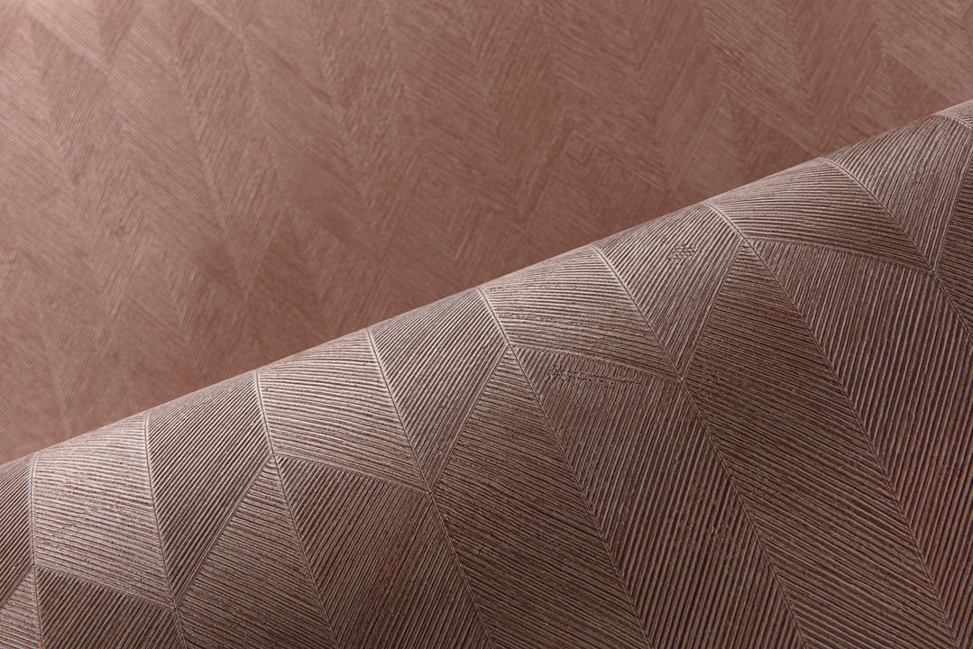 Vinylbehang met diep en natuurlijk ogend reliëf in strak geometrische vormen die een 3D-effect creëren